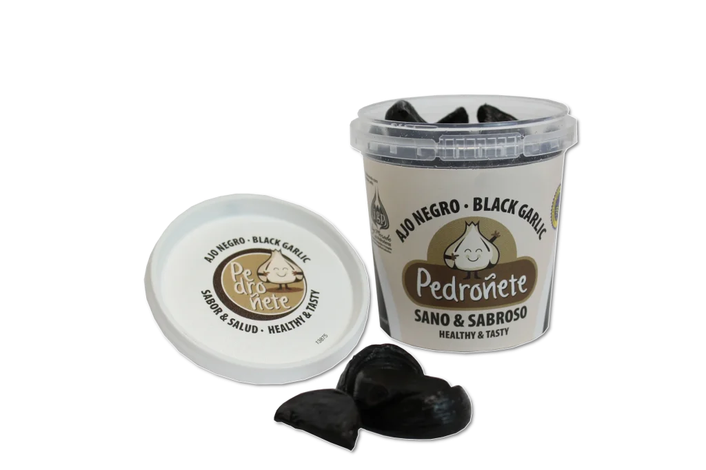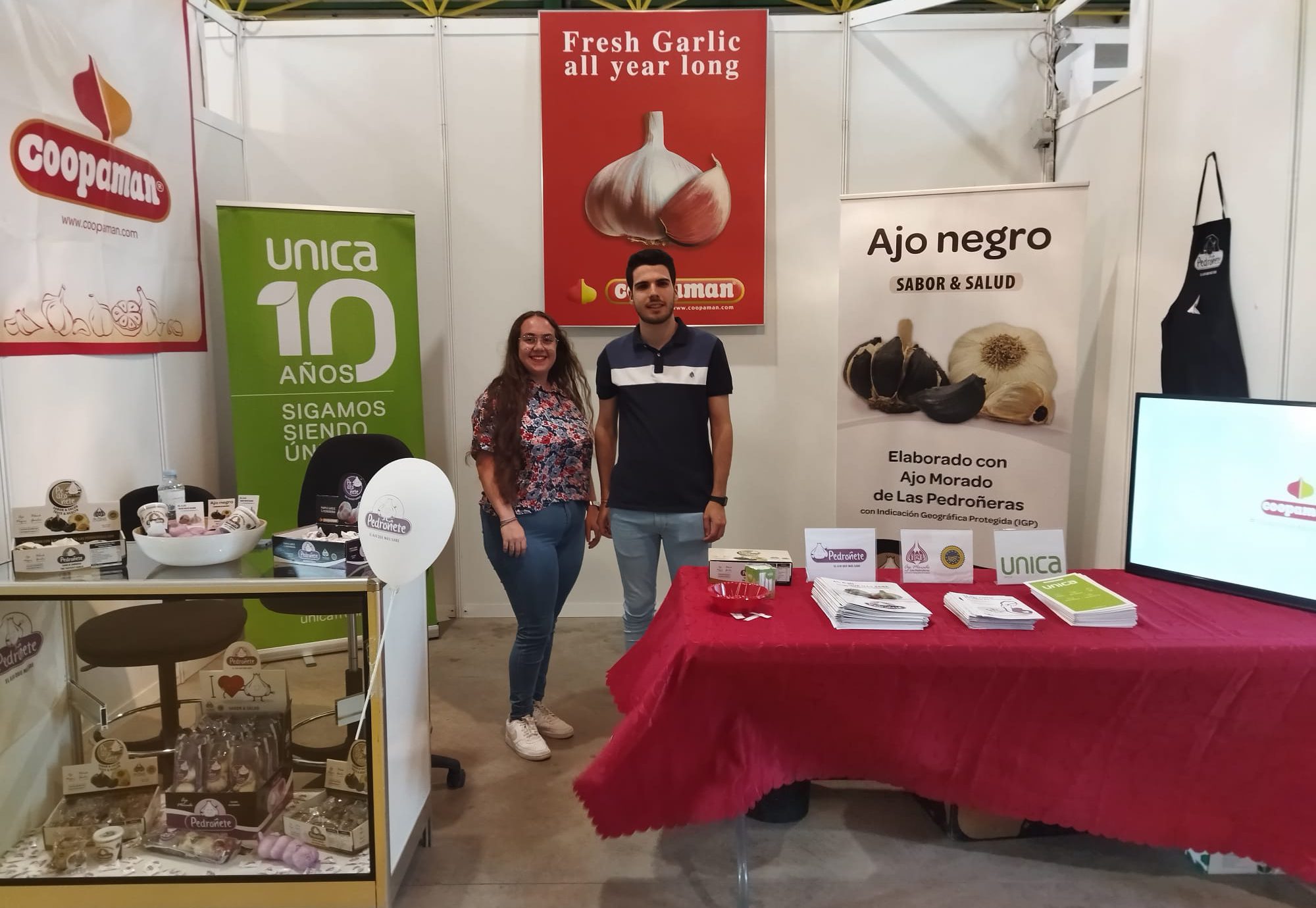 Desde Coopaman hemos tenido la gran oportunidad de participar, y con las expectativas altas después de no haberse podido realizar durante la pandemia, hemos aprovechado para comercializar un nuevo producto, el bote de diente pelado de ajo negro Pedroñete (85 gr.), el cuál ha sido todo un éxito.