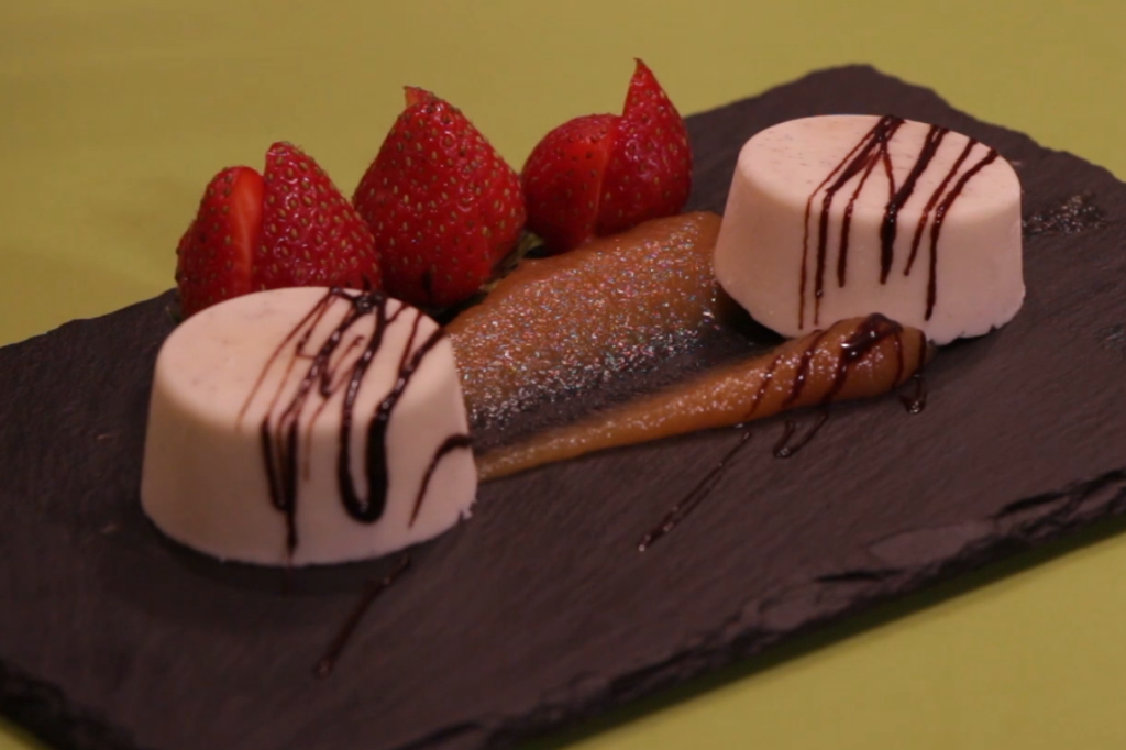 Semifrío Ajo Negro con compota de chocolate y fresa